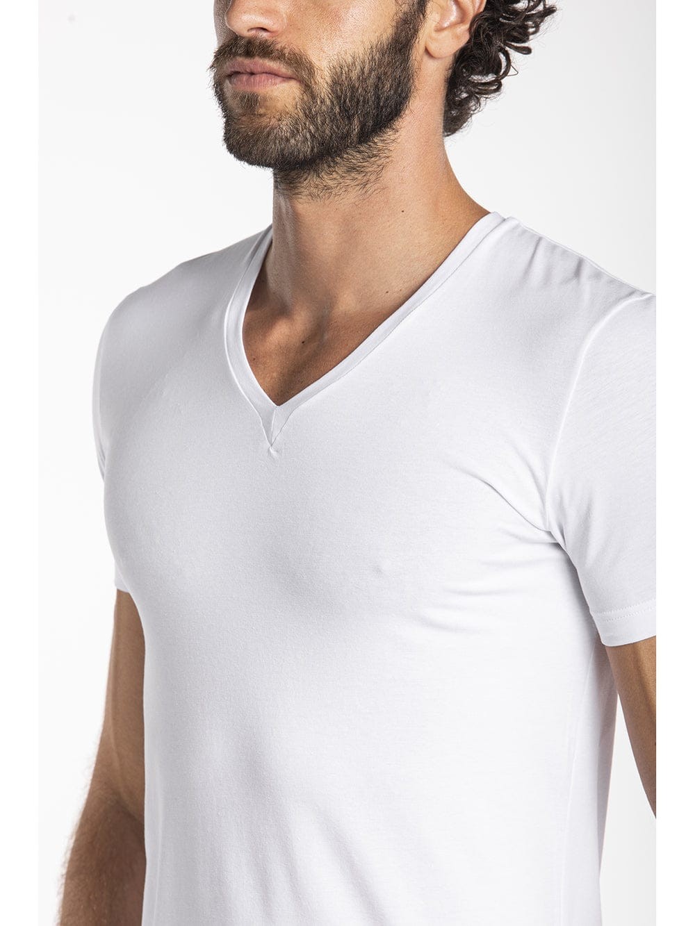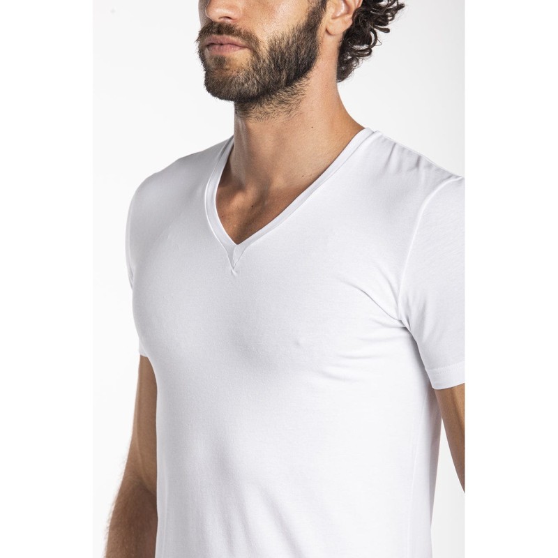 Maglietta a V in jersey di cotone elasticizzato