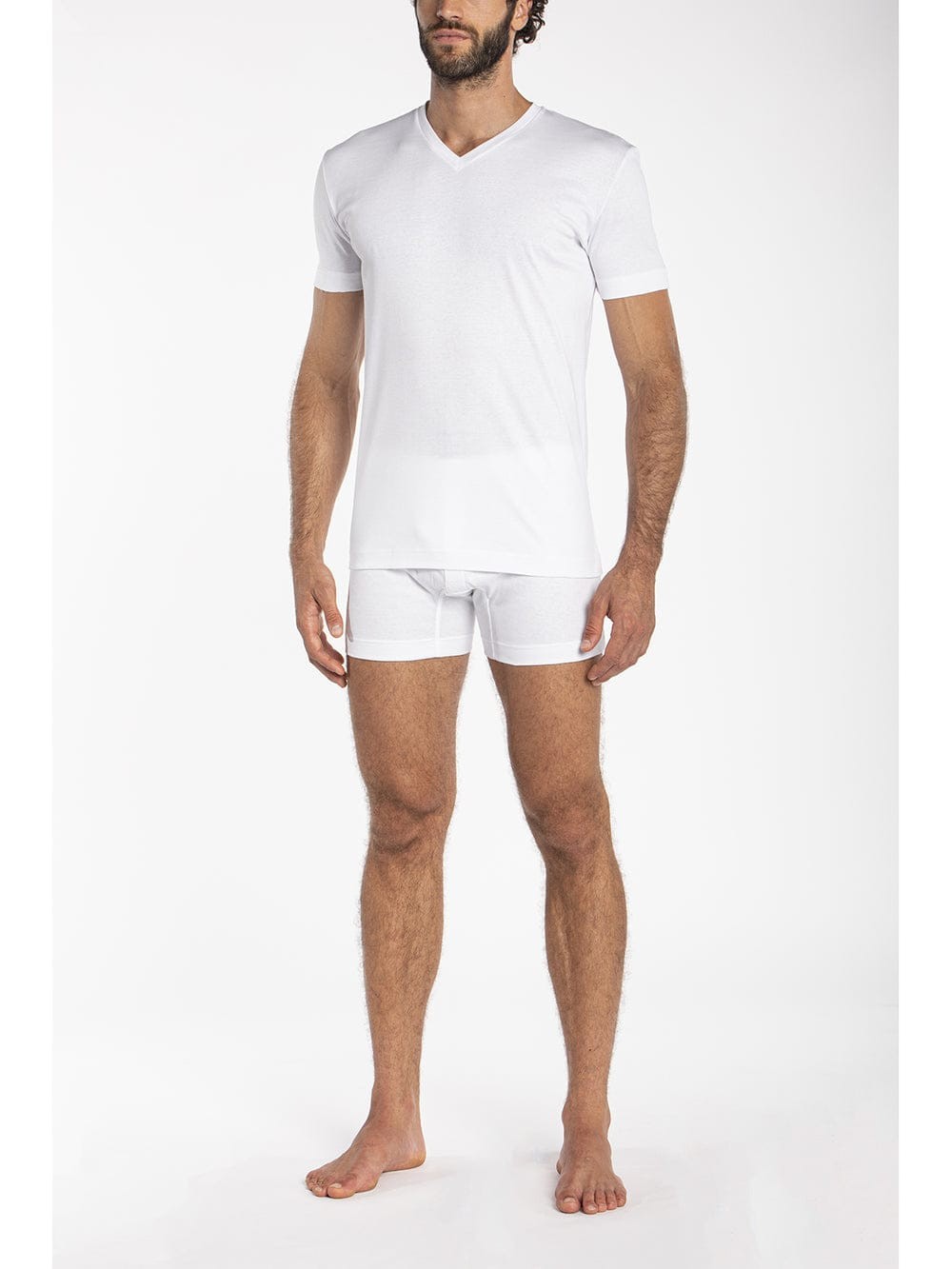 - Maglietta scollo a V in Interlock di puro cotone "doppia maglia"