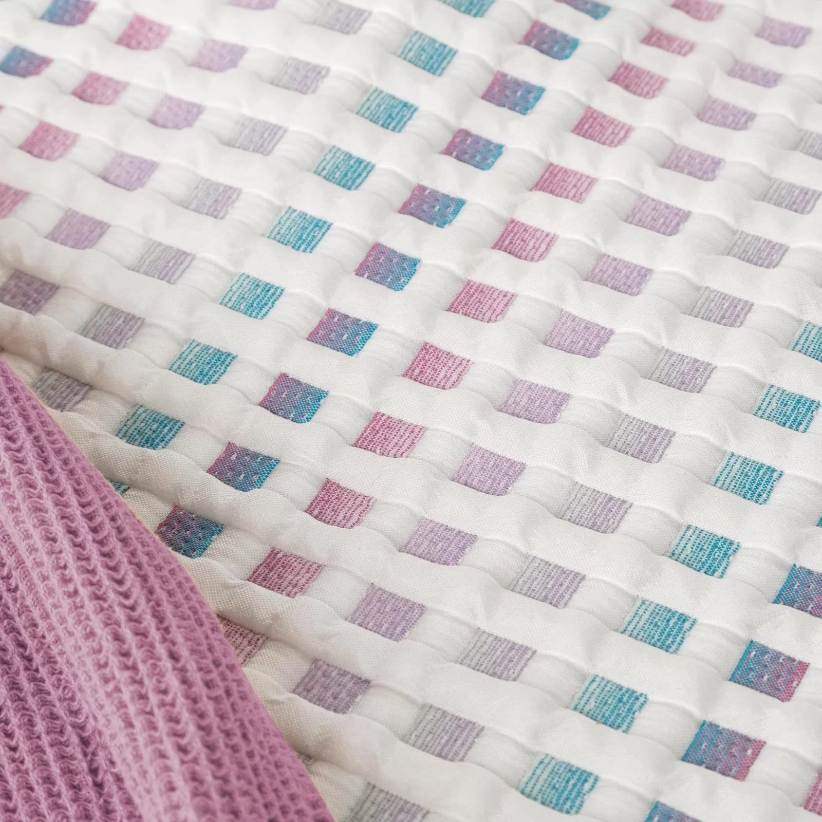 Copriletto a quadri in tessuto jacquard di medio spessore ideale per le stagioni primaverili e autunnali