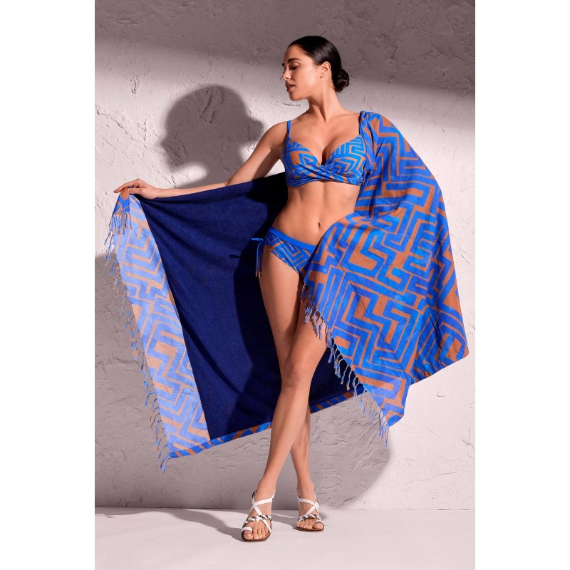 - Stampa geometrica di colore azzurro su fondo bronzo