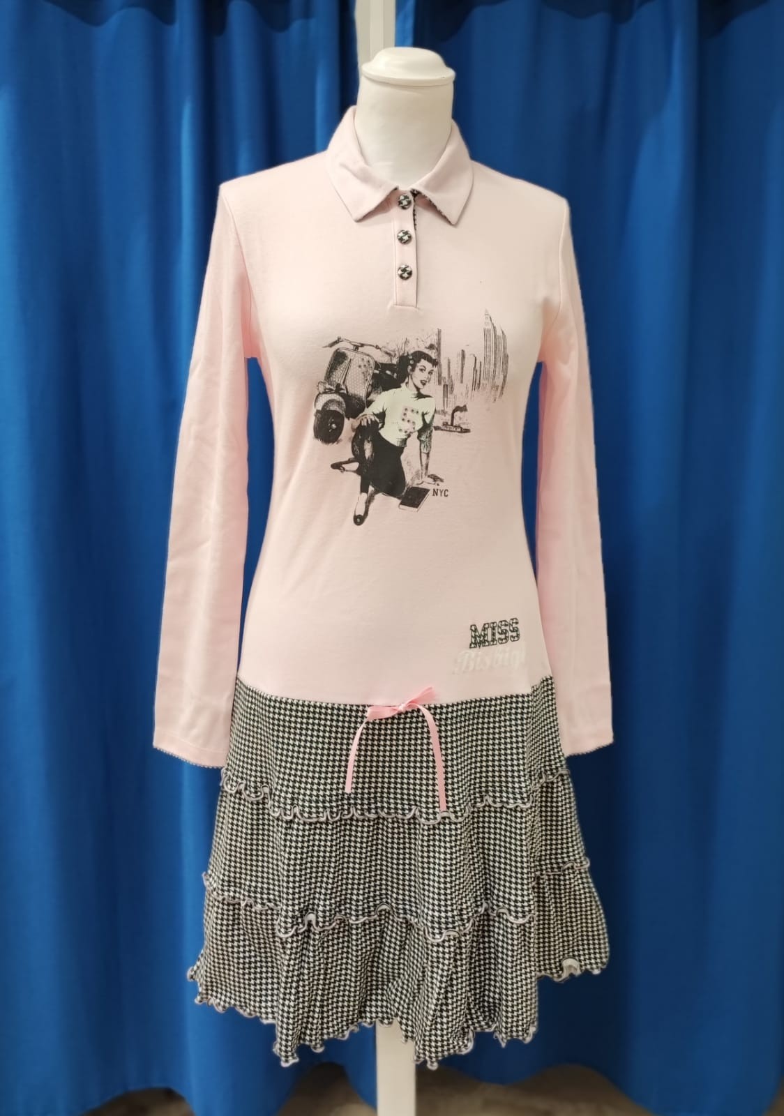 Camicia da notte scollo serafino, manica lunga con colletto