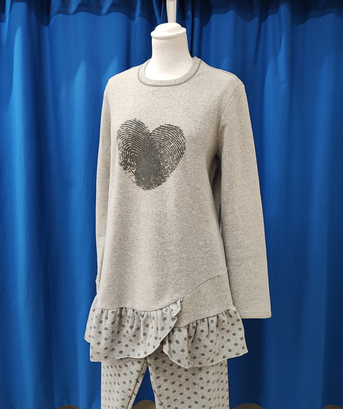 Pigiama scollo girocollo. Pantalone lungo, manica lunga.