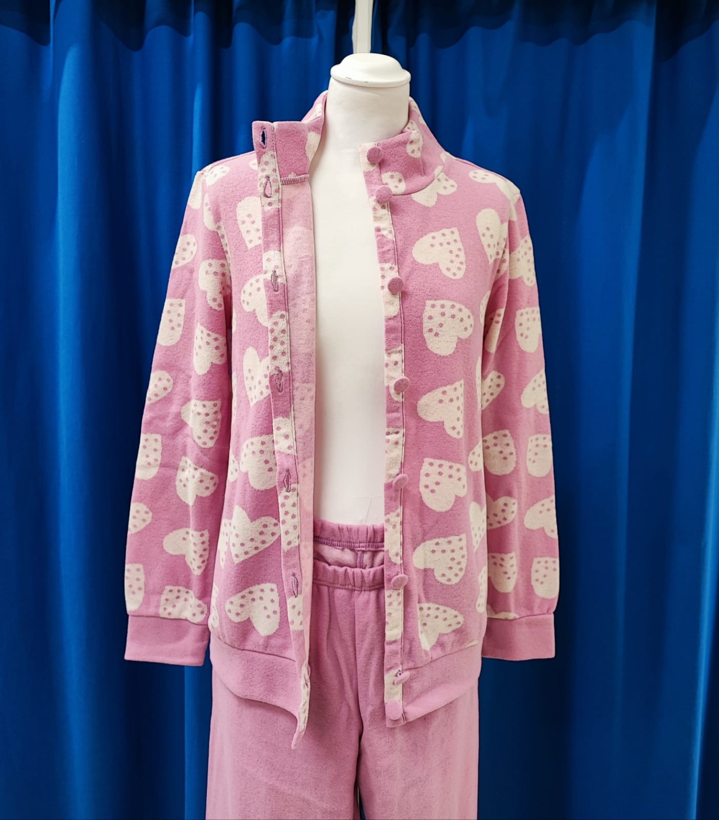 Pigiama aperto abbottonato. Pantaloni e maniche con polsi.