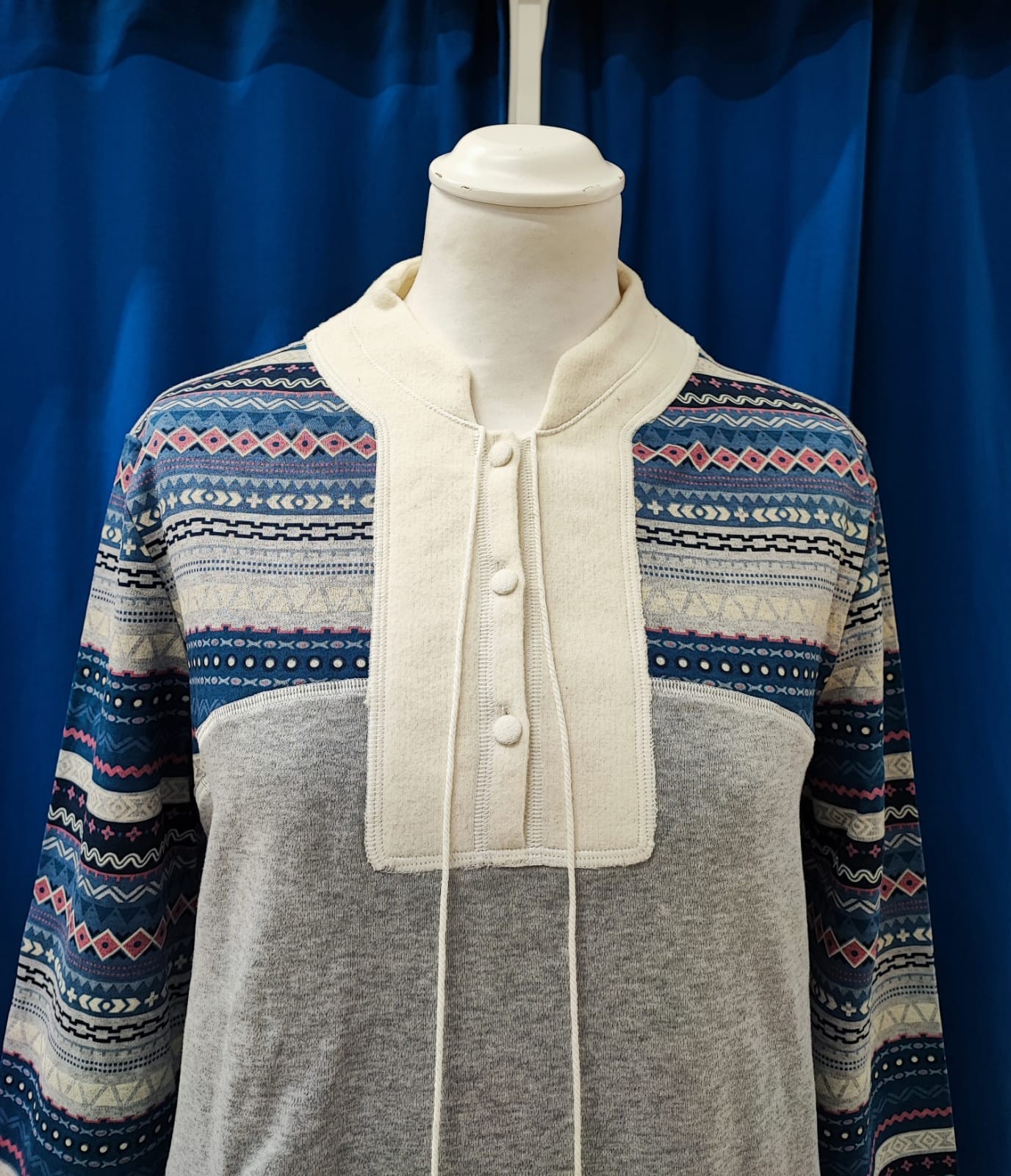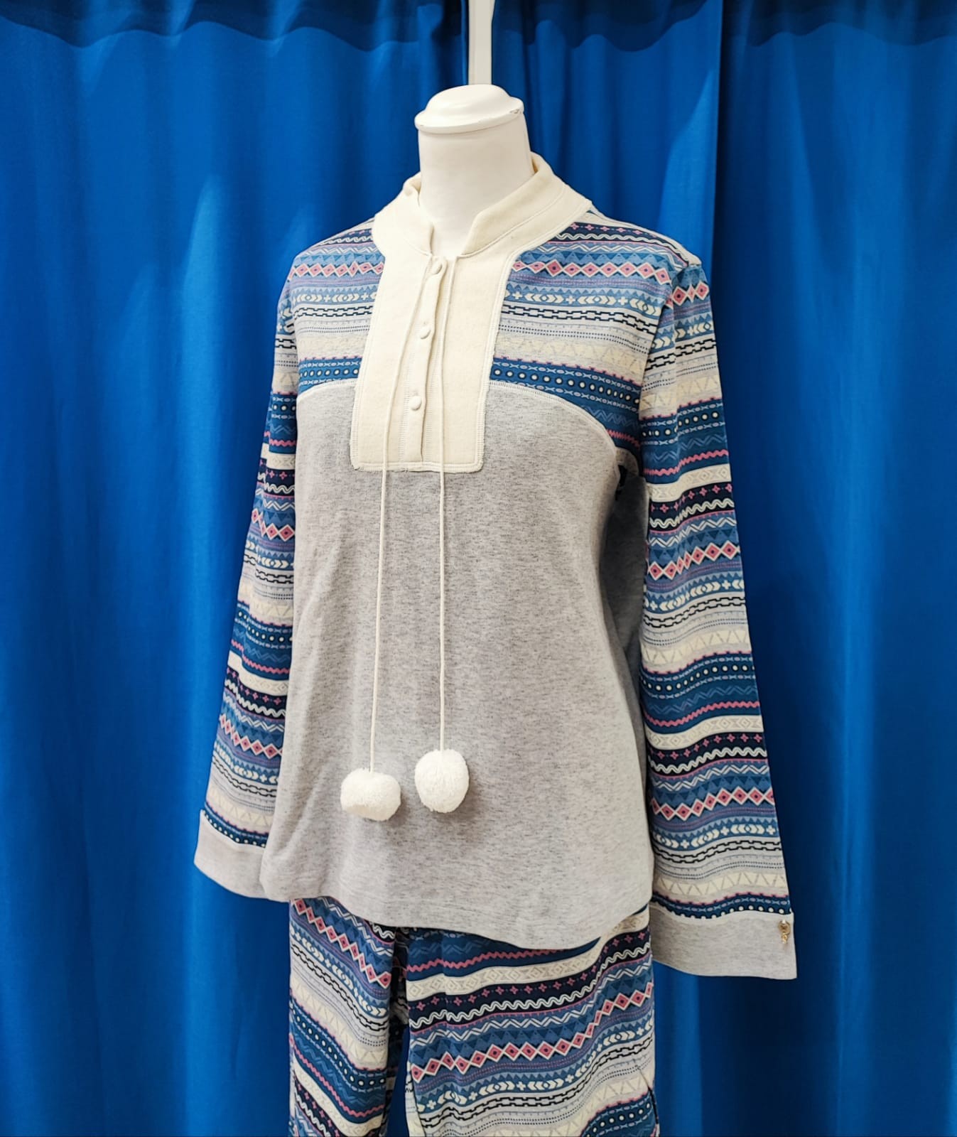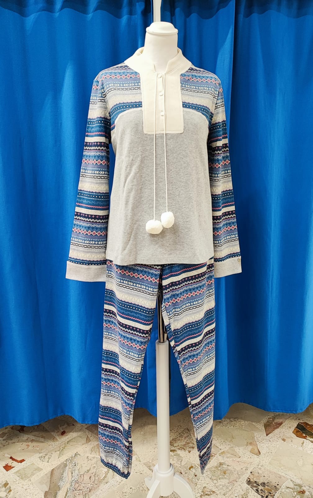 Pigiama scollo serafino. Manica lunga, pantalone lungo
