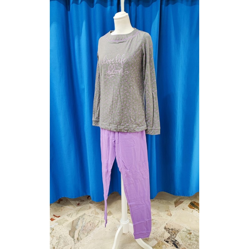Pigiama scollo girocollo. Manica lunga, pantalone lungo con polsi
