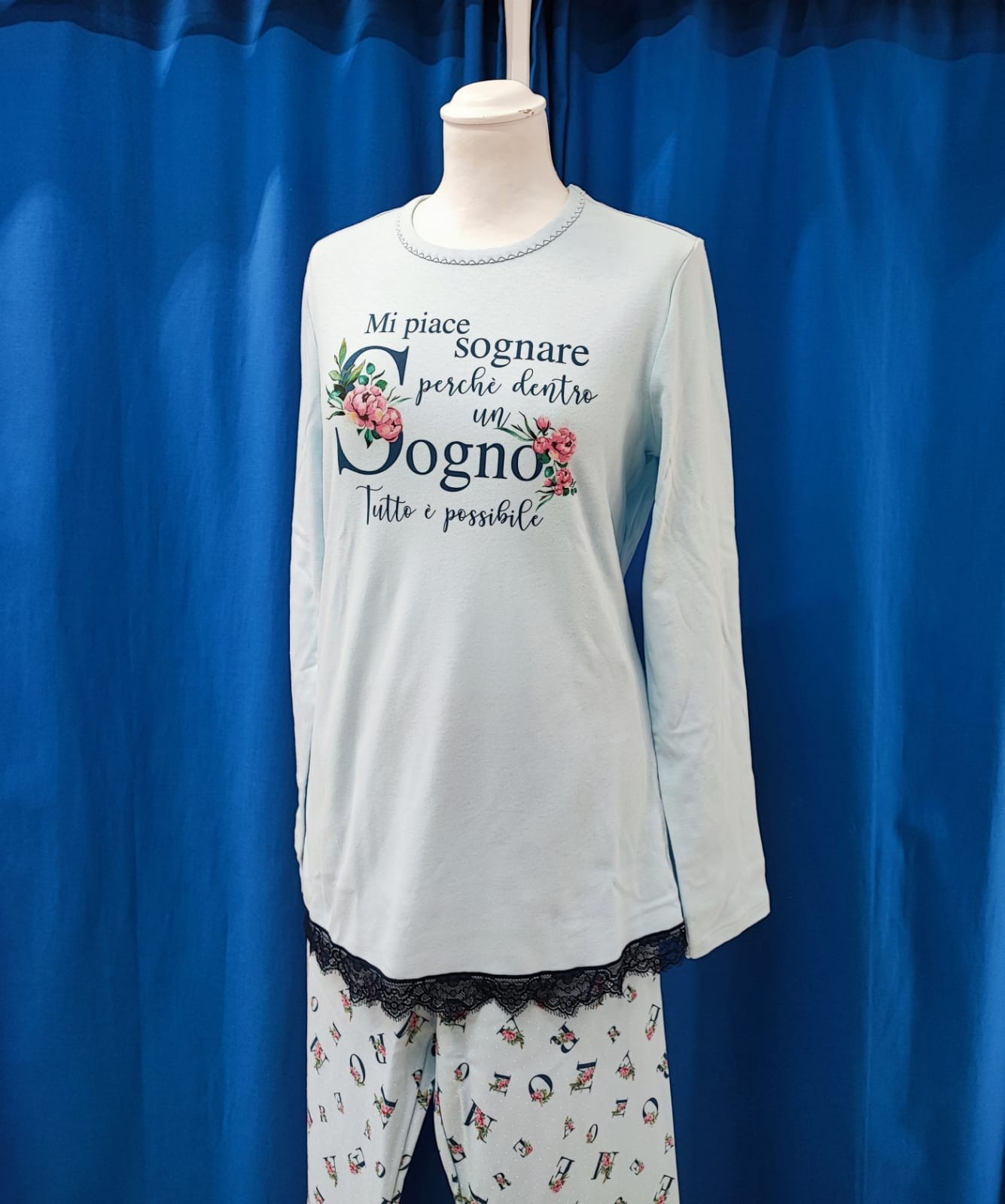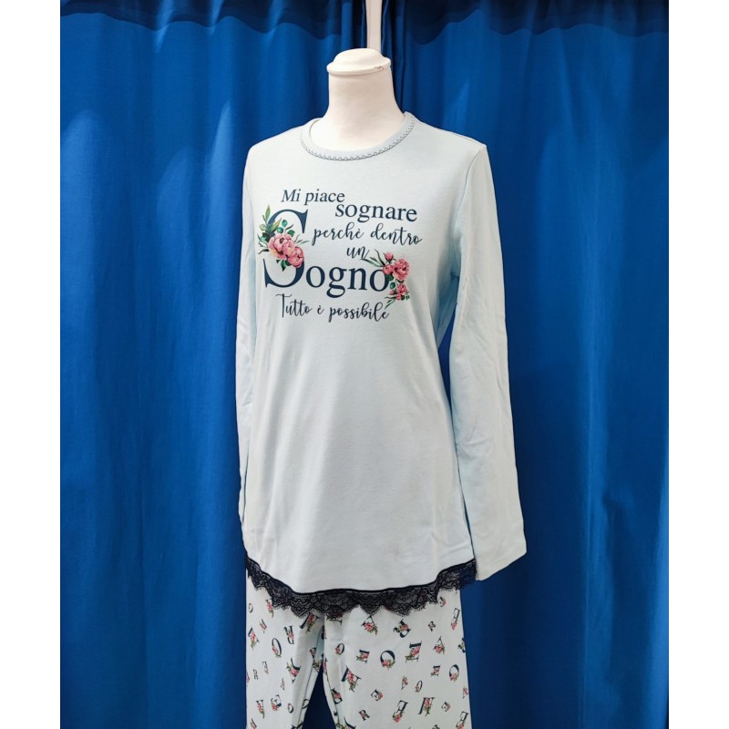 Pigiama scollo girocollo. Manica lunga, pantalone lungo con polsi.