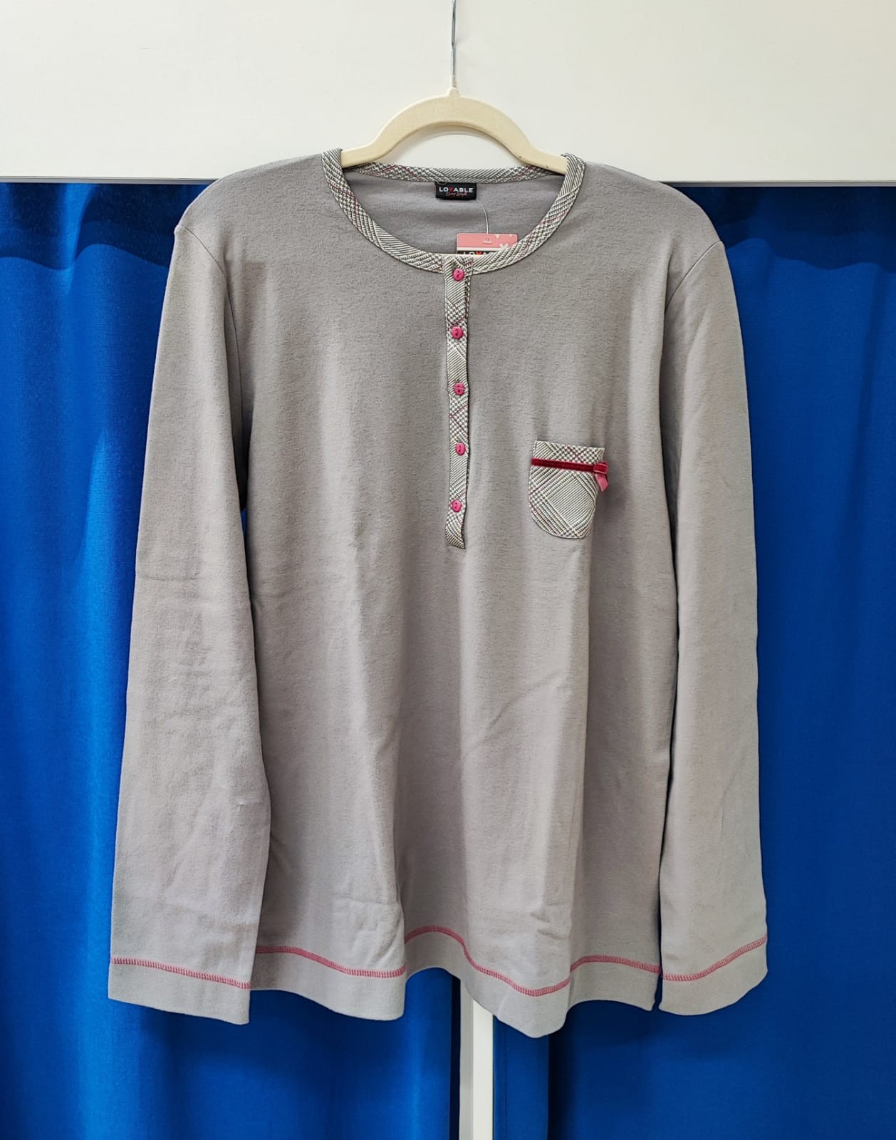 Pigiama scollo serafino. Manica lunga, pantalone lungo con polsi.