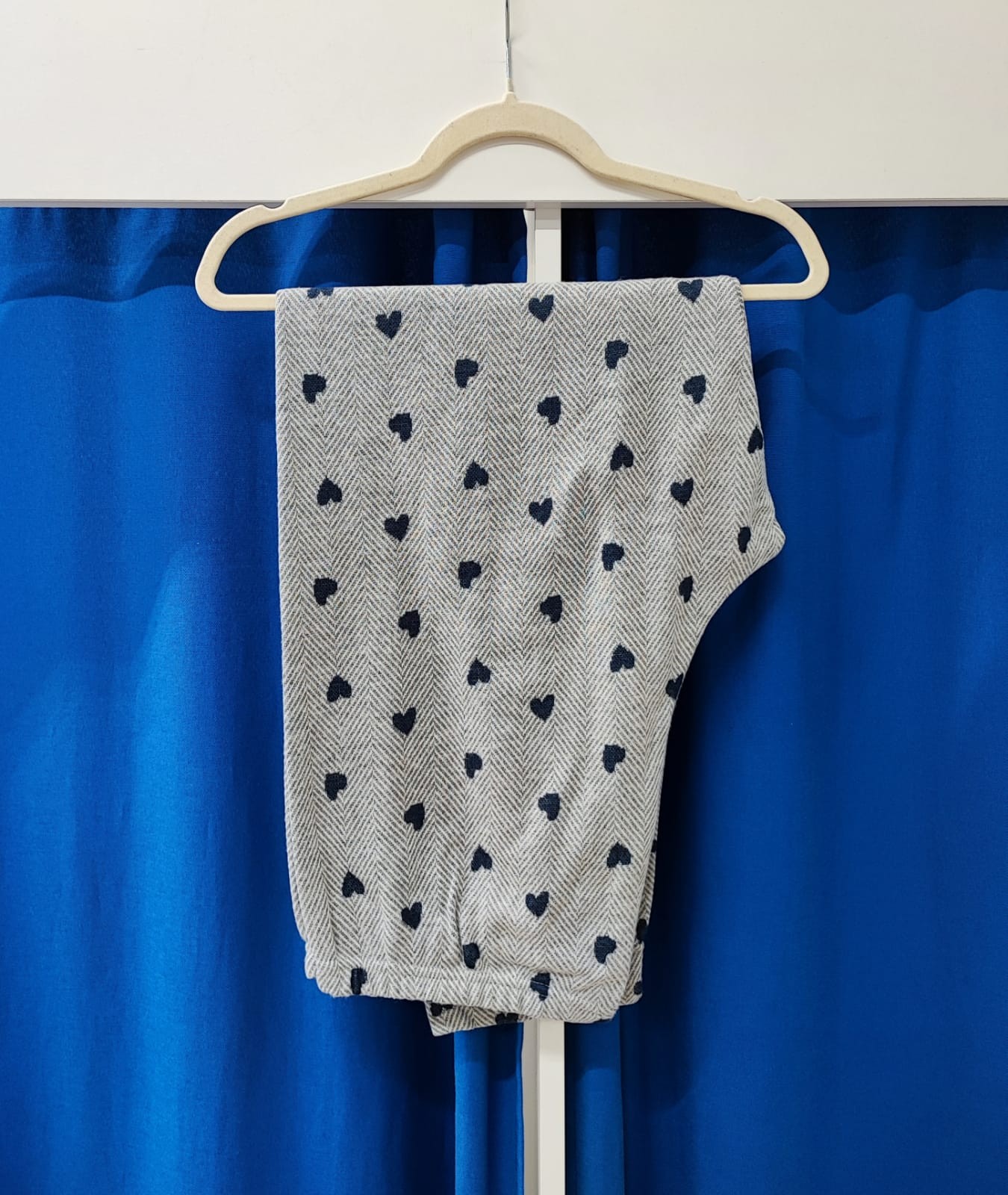 Pigiama scollo serafino. Manica lunga con polsi, pantalone lungo con polsi.