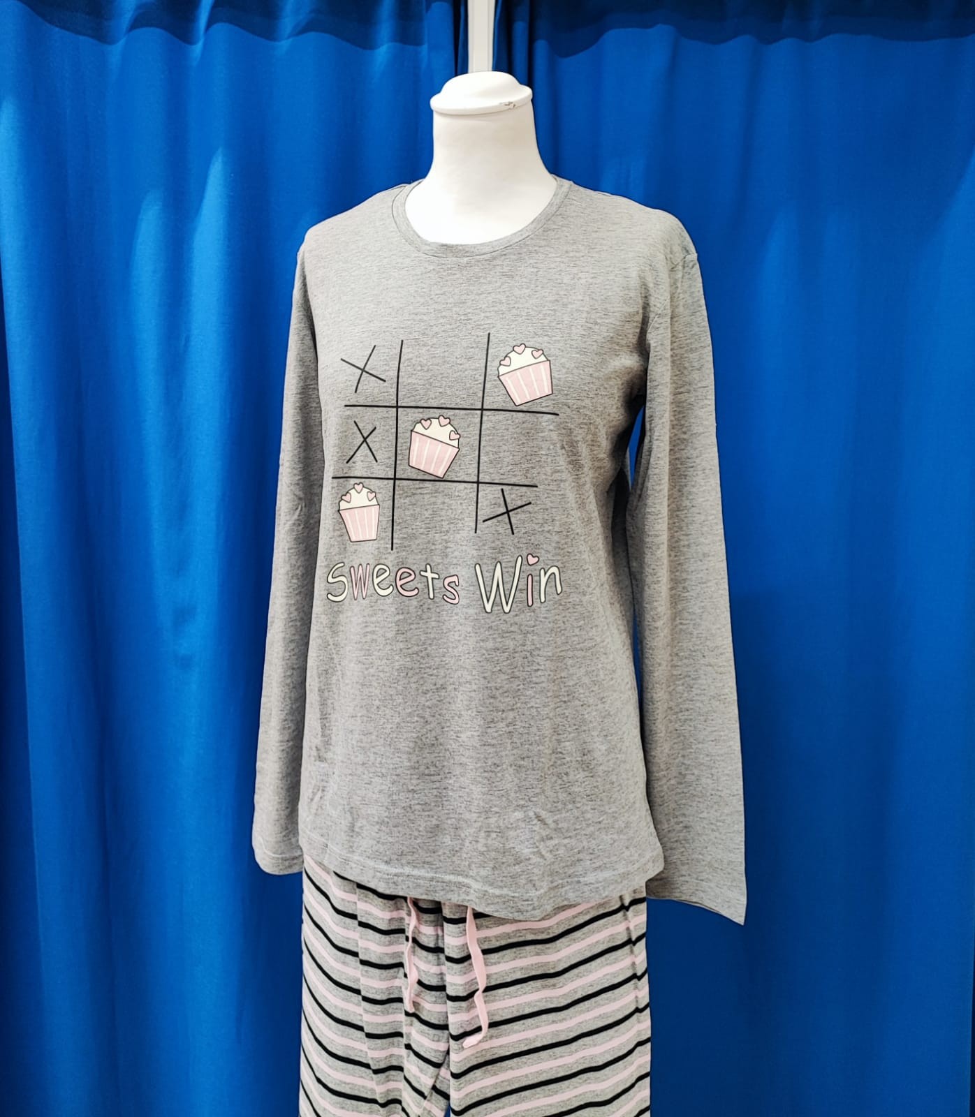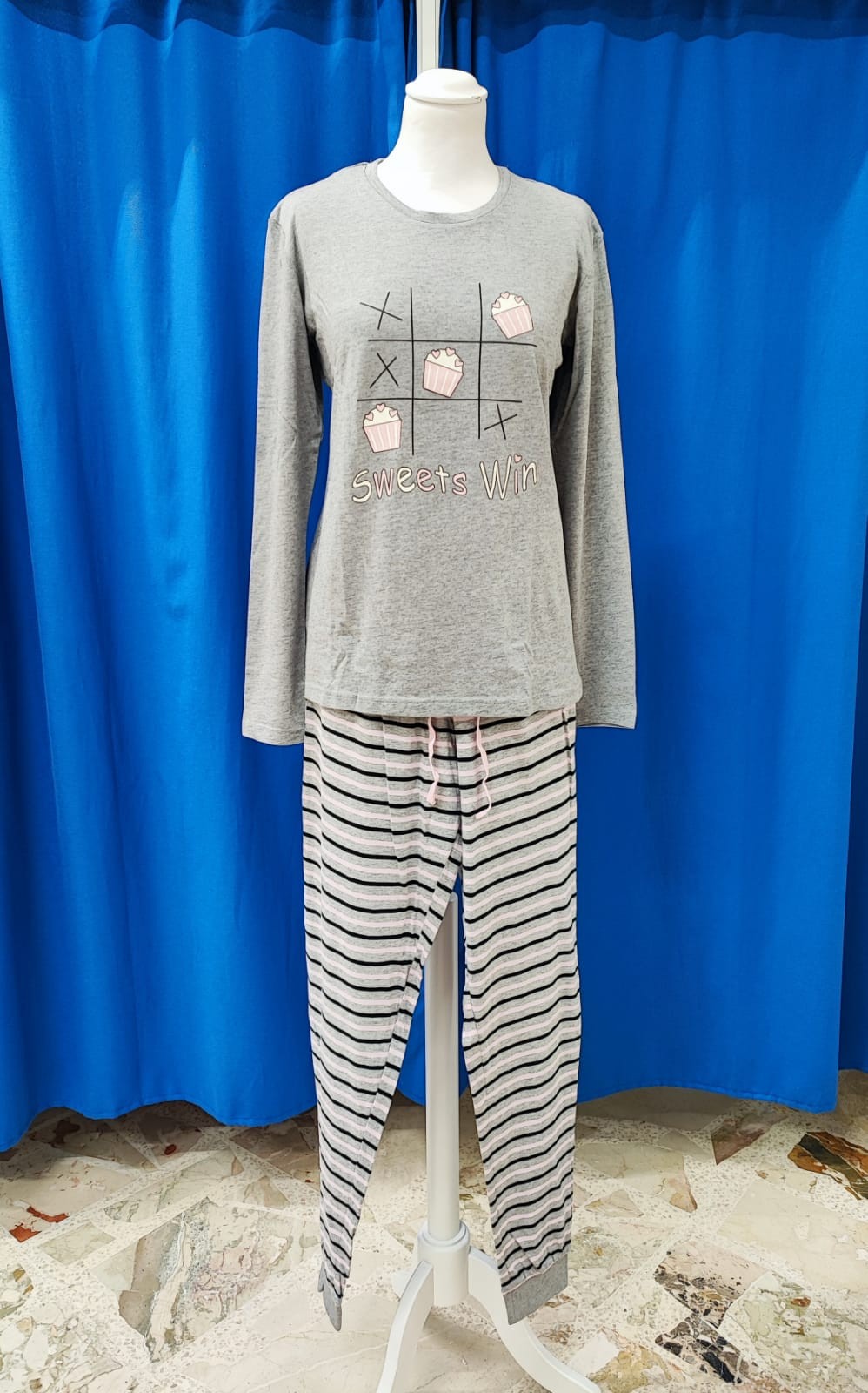Pigiama scollo girocollo. Manica lunga, pantalone lungo con polsi